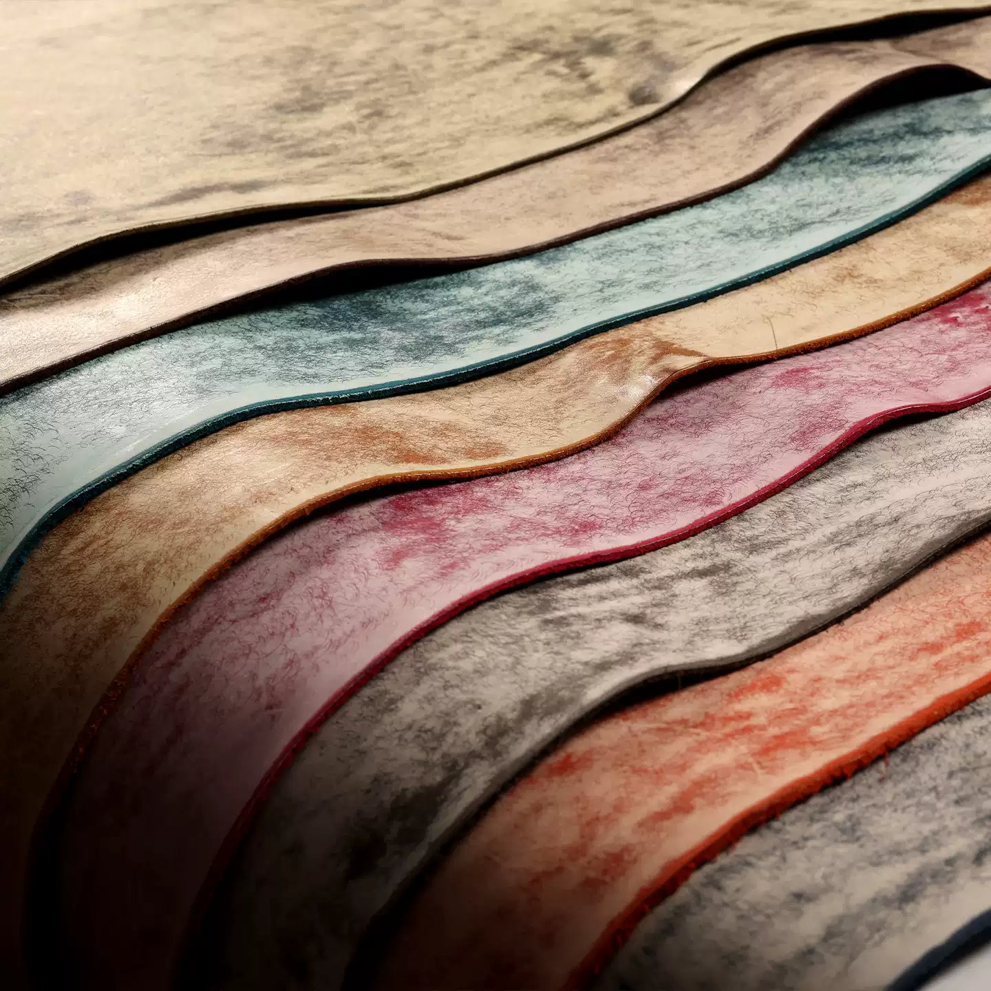 ロウ引きした銀面が特徴のアーティスティックなショルダー革です。