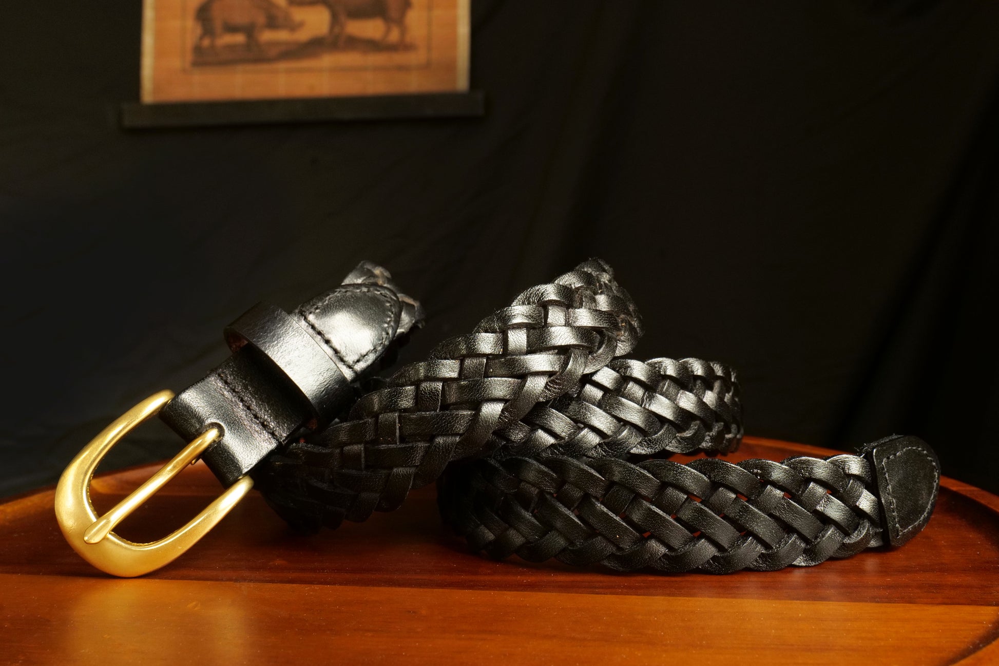 レザーメッシュベルト 真鍮バックル/ハンドメイド クラシック