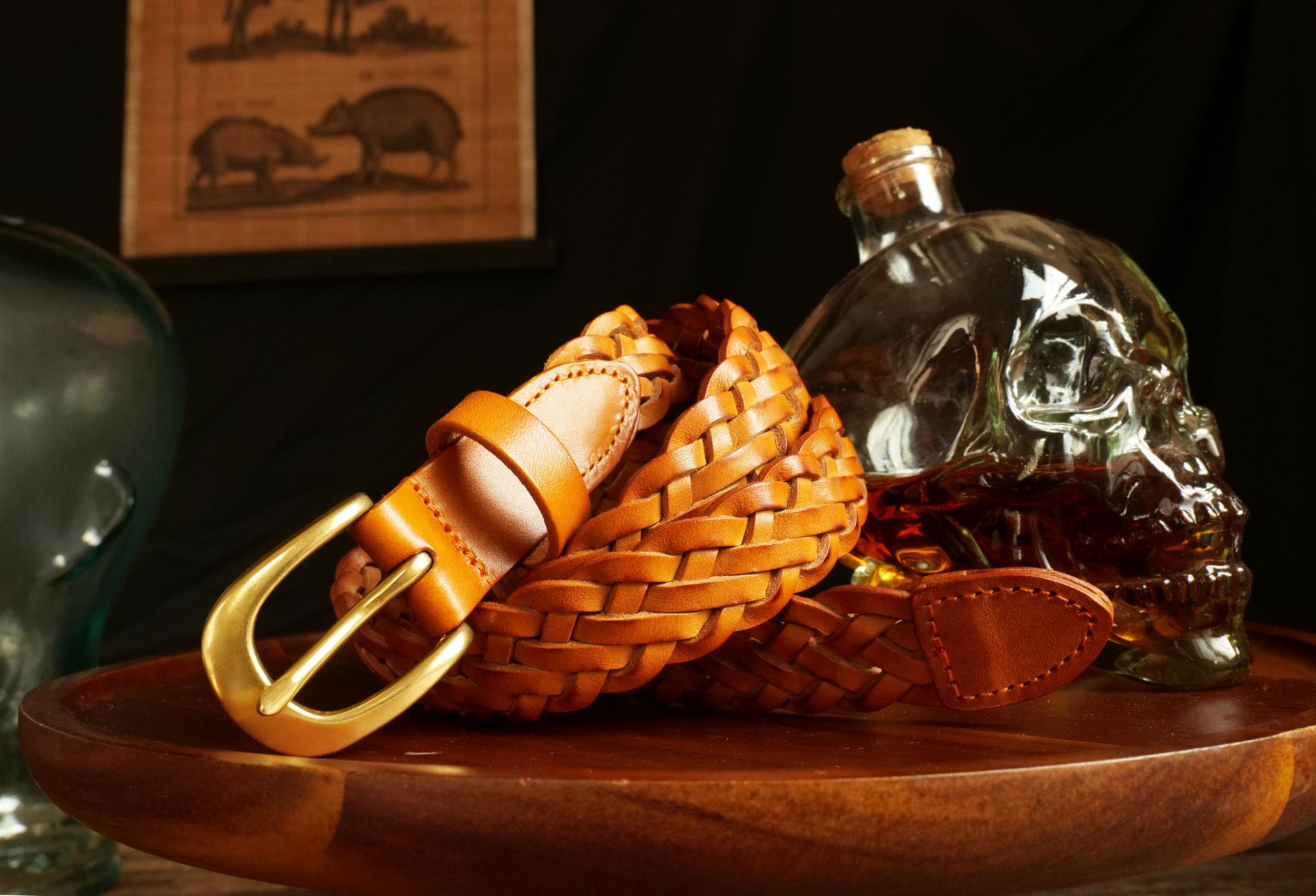 上質な牛革を使用したハンドメイドメッシュベルト。