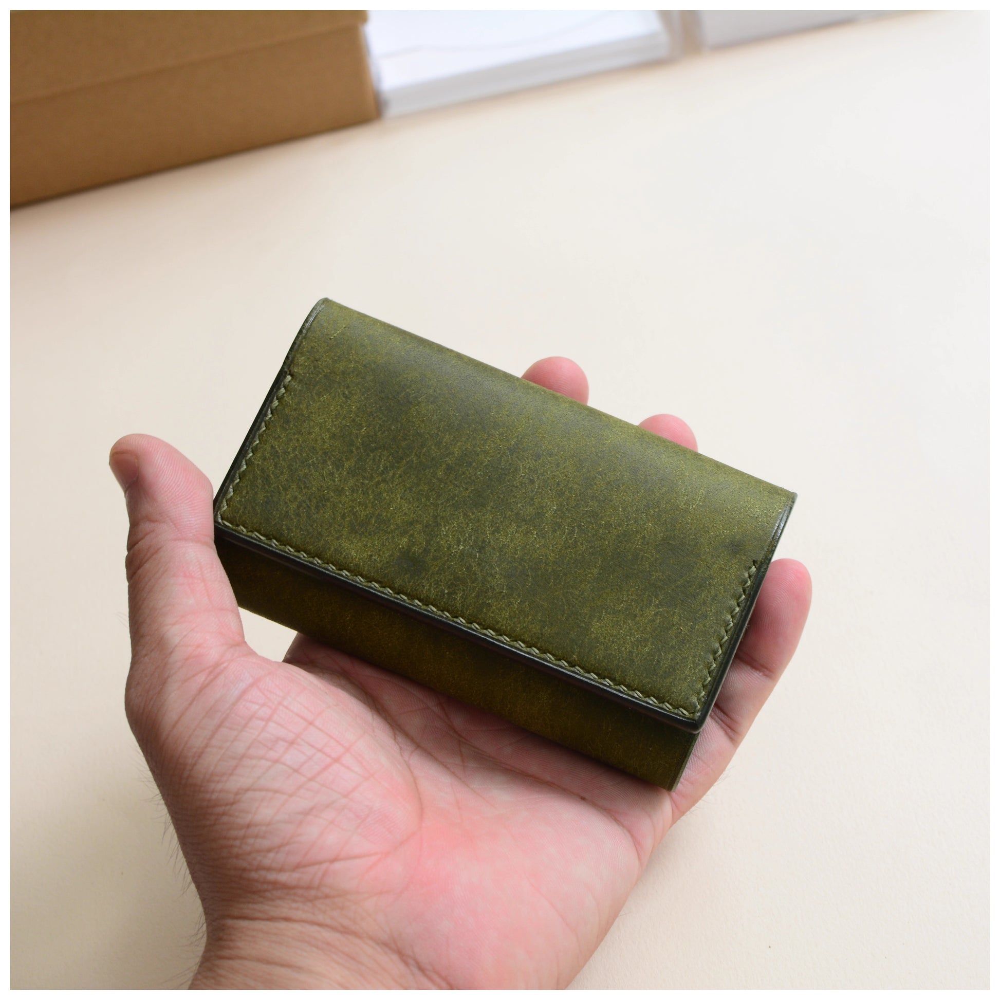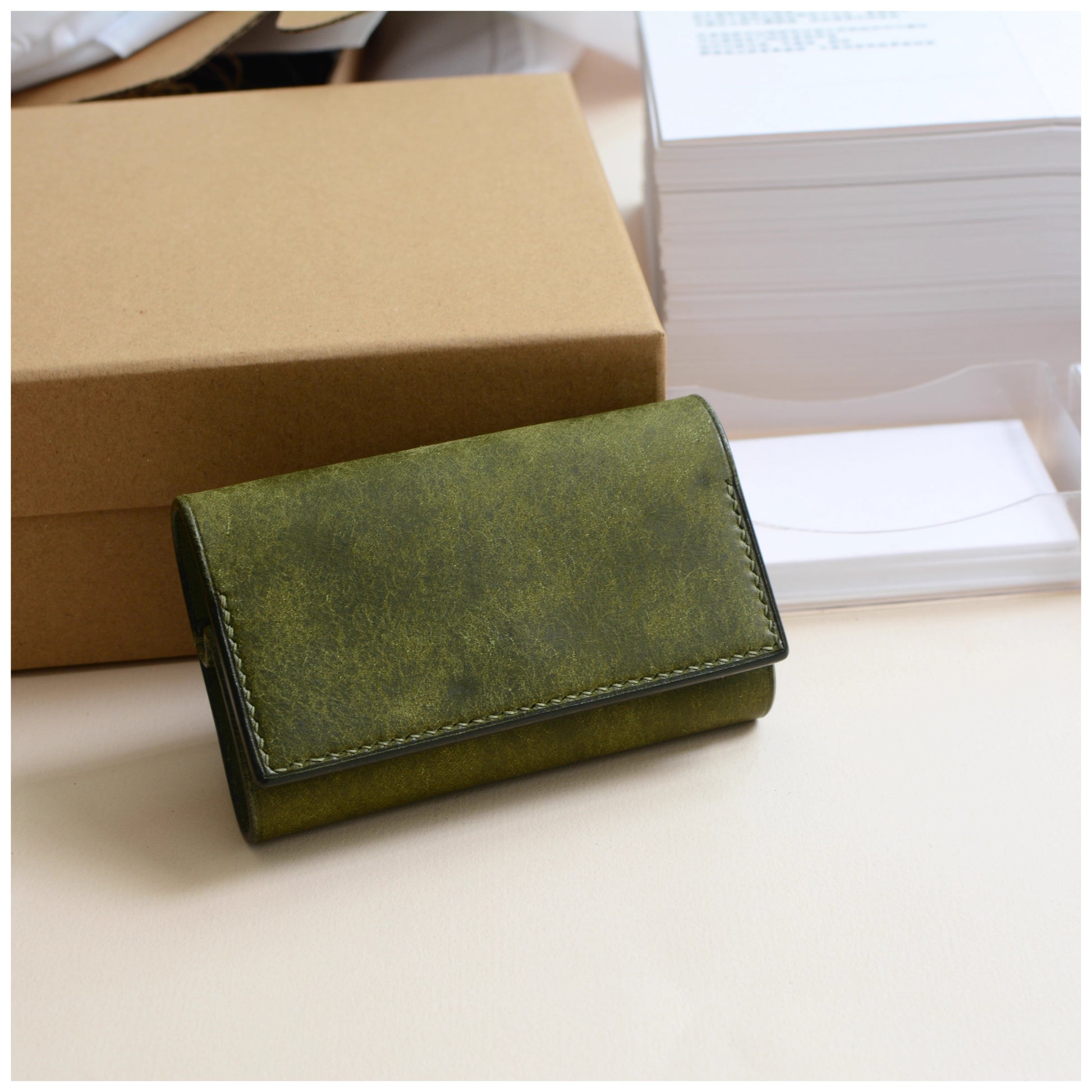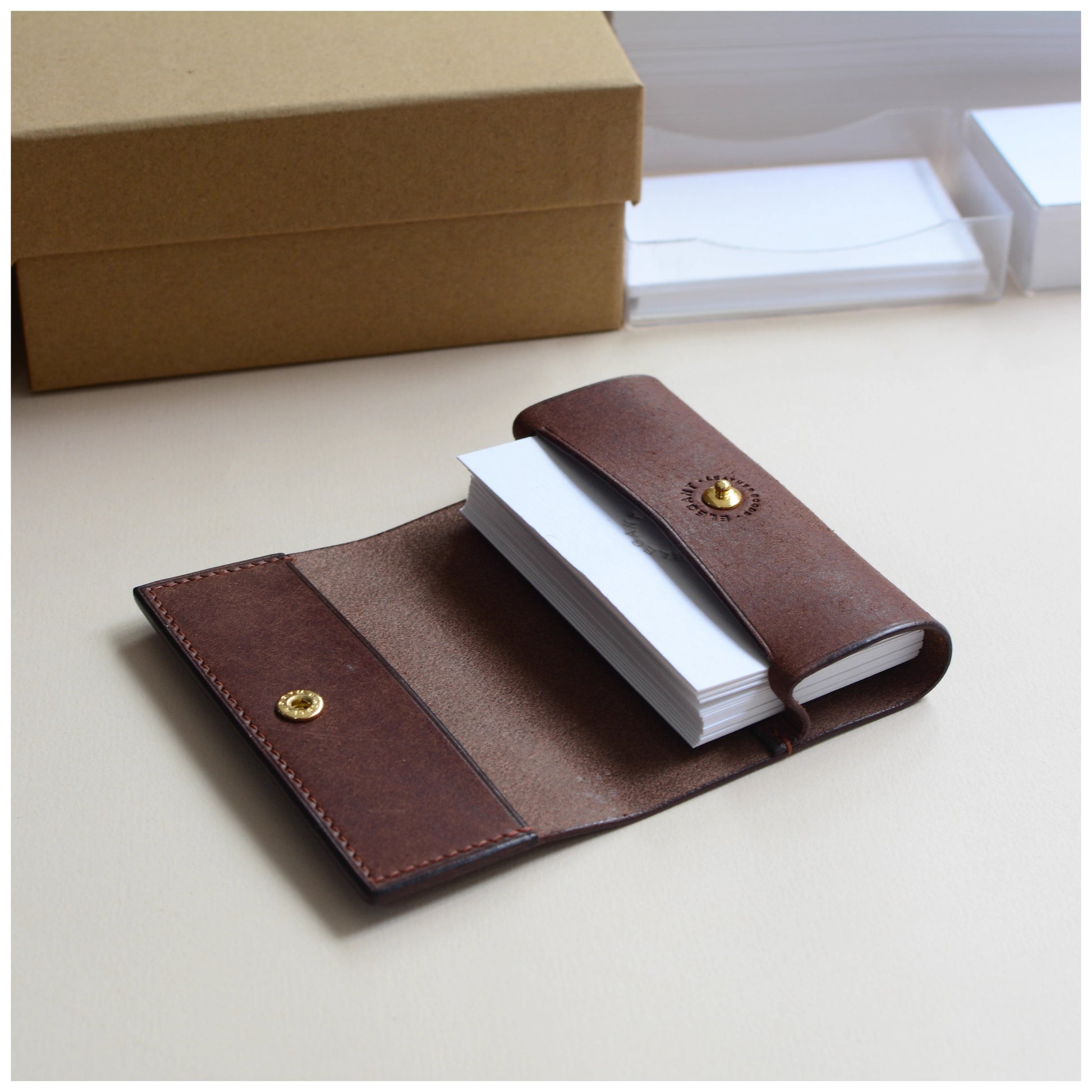 ※商品は最初、革が引き締まった状態ですので若干カード等入れにくさを感じることがございますが、お使いいただくほどに、革の繊維がゆるみ手馴染みが良くなり、カードも入れやすくなってまいります。