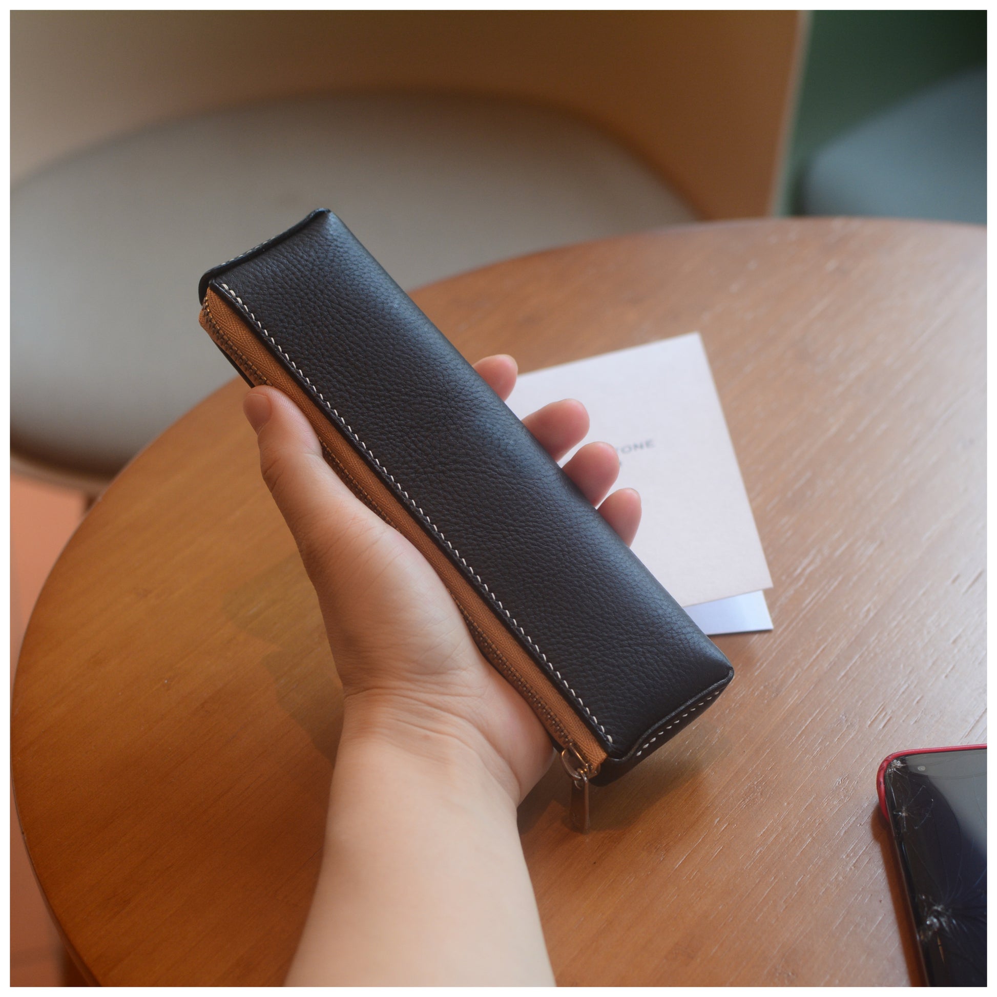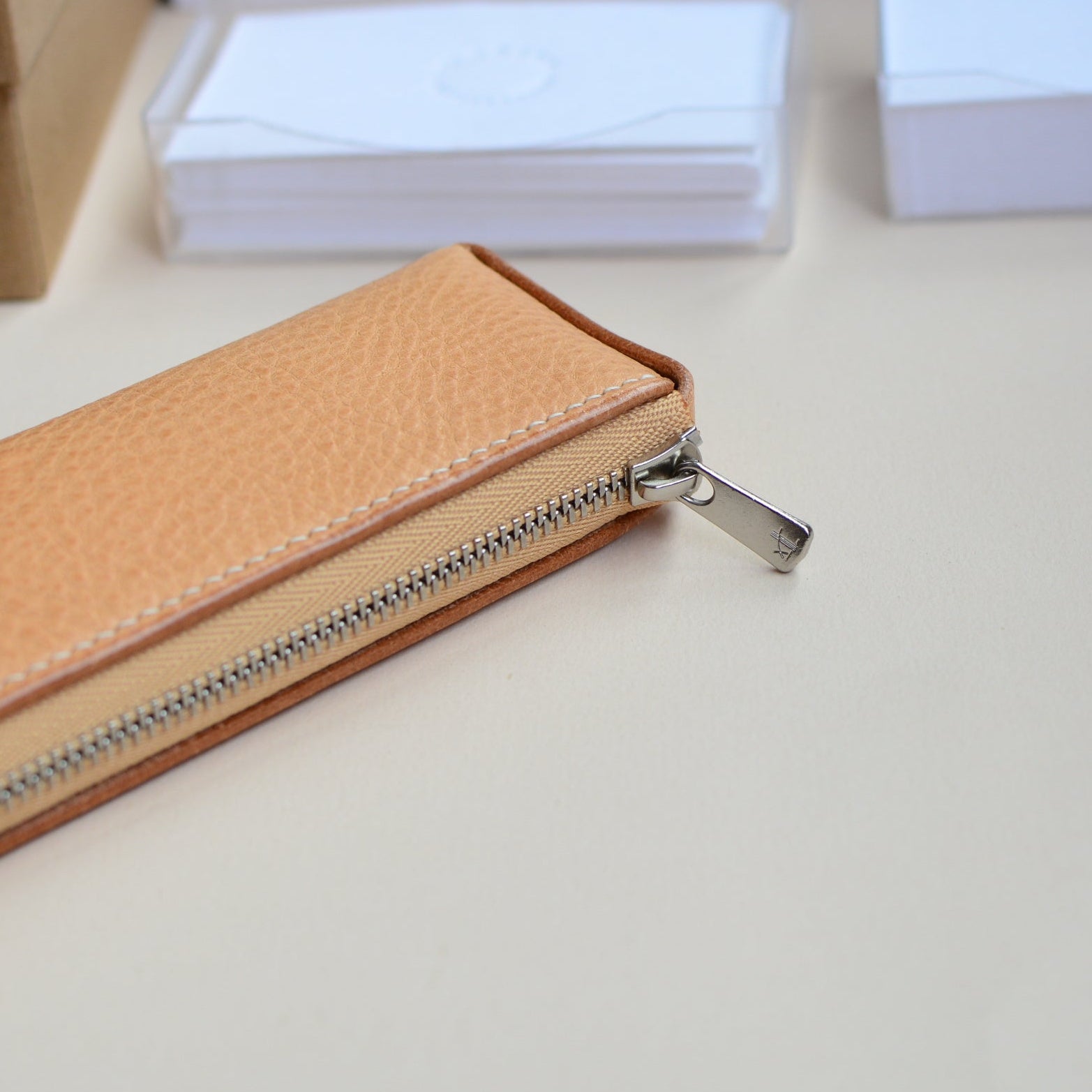 『手縫い 』軽量ペンケース 45g /YKKエクセラ使用 コンパクト 本革 文具ケース