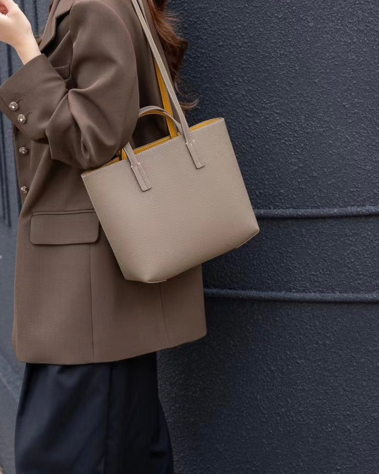 デイリーカジュアル:週末の外出やカフェでのひととき。肩掛けや手持ちで、装いに上質なアクセントをプラスします。